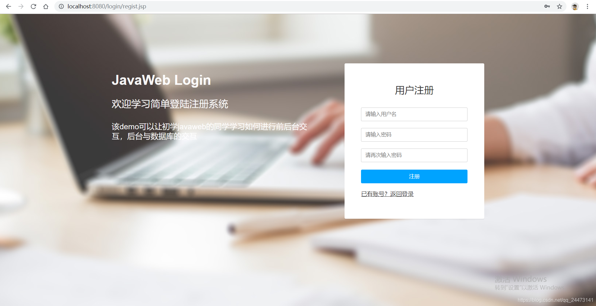 javaweb登录注册功能实现 javaweb 登陆注册 入门 mysql数据库交互 web前后台交互 用户管理增删改查 实现登录 注册 登陆 JavaWeb 简单登陆注册