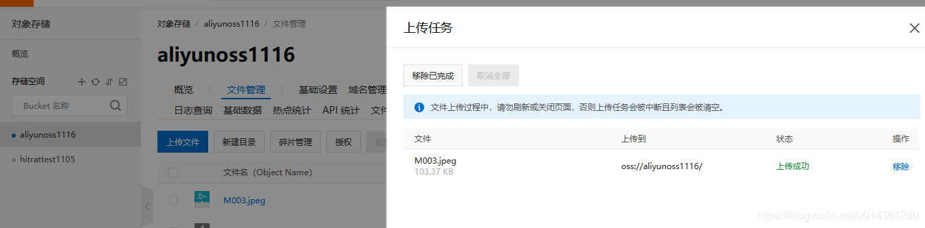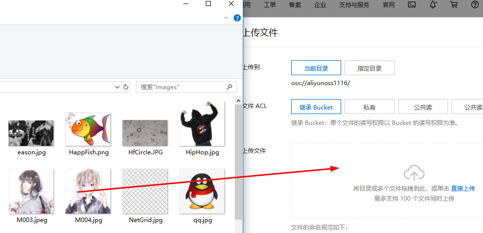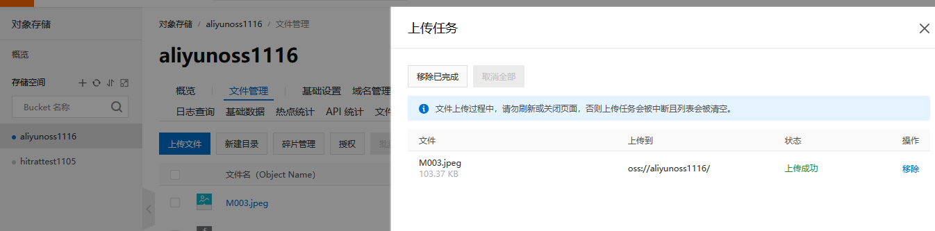4、如果 Bucket 没有图片,可以对应上传一张图片作为测试