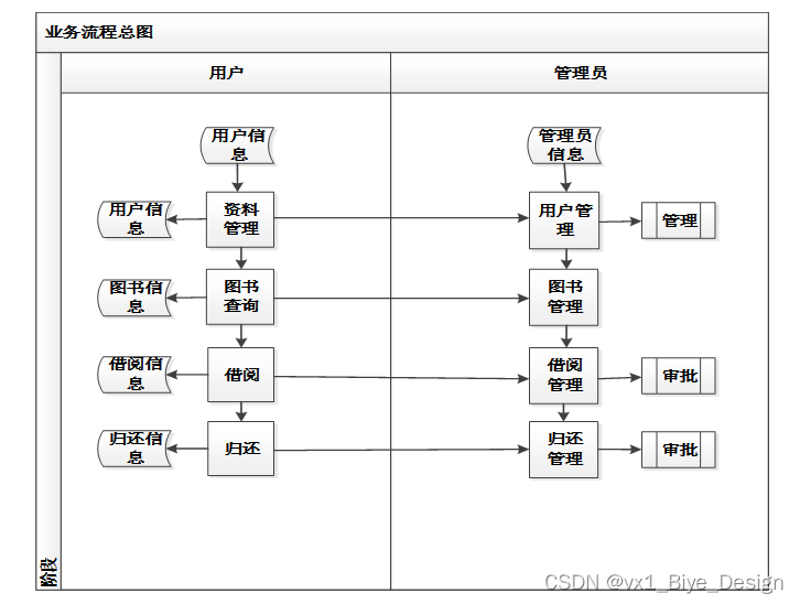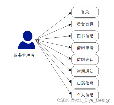 普通用户在系统前台后,数据库的借阅记录表生成借阅记录信息,图书管理者在借阅申请列表审核用户的借阅信息,审核通过,用户借阅成功,否则借阅失败。