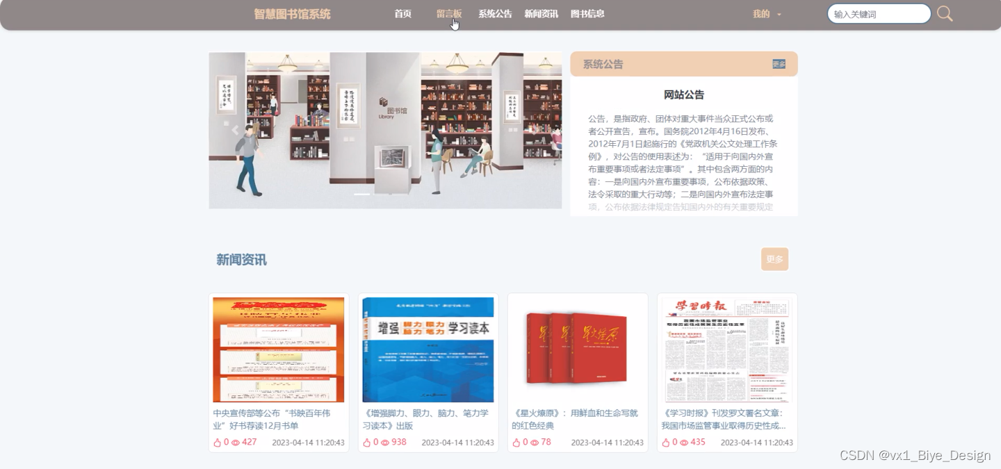 本文课题研究的“图书馆书籍管理”系统,网站的主要功能模块包括图图书信息管理、借阅申请管理、借阅确认管理、逾期通知管理、归还信息管理、资源管理、交流管理、系统用户管理等,采取面对对象的开发模式进行软件的开发和硬体的架设,能很好的满足实际使用的需求,完善了对应的软体架设以及程序编码的工作,采取MySQL作为后台数据的主要存储单元,采用Springboot框架、JSP技术、Java语言进行业务系统的编码及其开发,实现了本系统的全部功能。本次报告,首先分析了研究的背景、作用、意义,为研究工作的合理性打下了基础。针对智慧图书馆系统的各项需求以及技术问题进行分析,证明了系统的必要性和技术可行性,然后对设计系统需要使用的技术软件以及设计思想做了基本的介绍,最后来实现智慧图书馆系统和部署运行使用它。