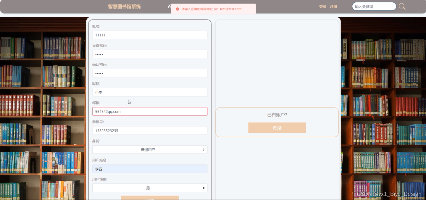 | 2109402315 | 123456 | 用户名出错,请重新输入! |