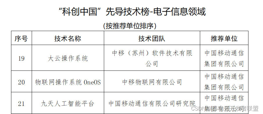 近日,中国科学技术协会公布了2022年“科创中国”系列榜单,移动云大云操作系统入选“先导技术榜”电子信息领域推荐名单。