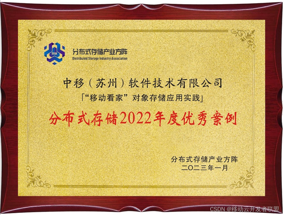 中国信通院对国内一批成熟度高、具有示范性标杆作用的优秀分布式存储实践案例进行调研和评选。在四十余份申报案例中,移动云的“‘移动看家’对象存储应用实践”脱颖而出,荣膺“分布式存储2022年度优秀案例”。