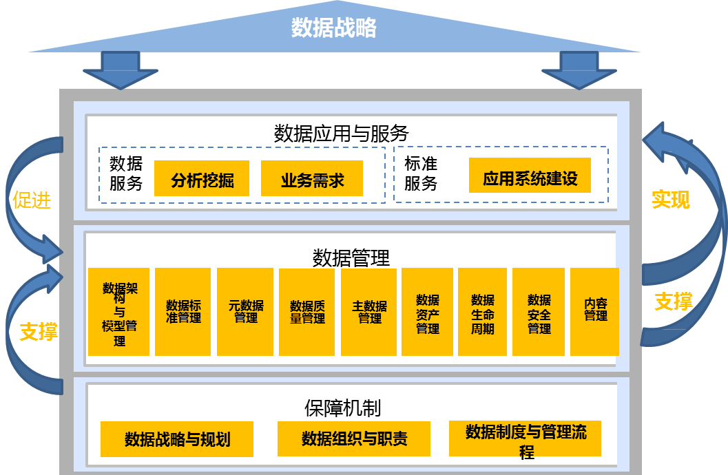 我司对大数据治理有深刻的认知与理解,并基于对大数据治理的认识构建了一整套大数据治理的思想方法体系,搭建了数据治理实施的框架。具体,我司的大数据治理框架如下: