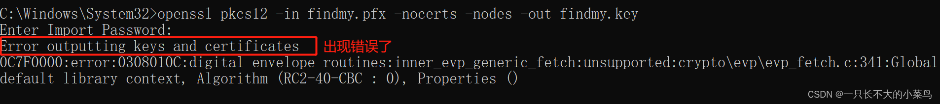 //从pfx证书提取出key文件,win系统需要安装openssl工具 openssl pkcs12 -in name.pfx(你证书的绝对路径) -nocerts -nodes -out name.key(你需要导出key证书的key路径)这一步提示报错的朋友,请先安装openssl环境,这里是程序下载地址: