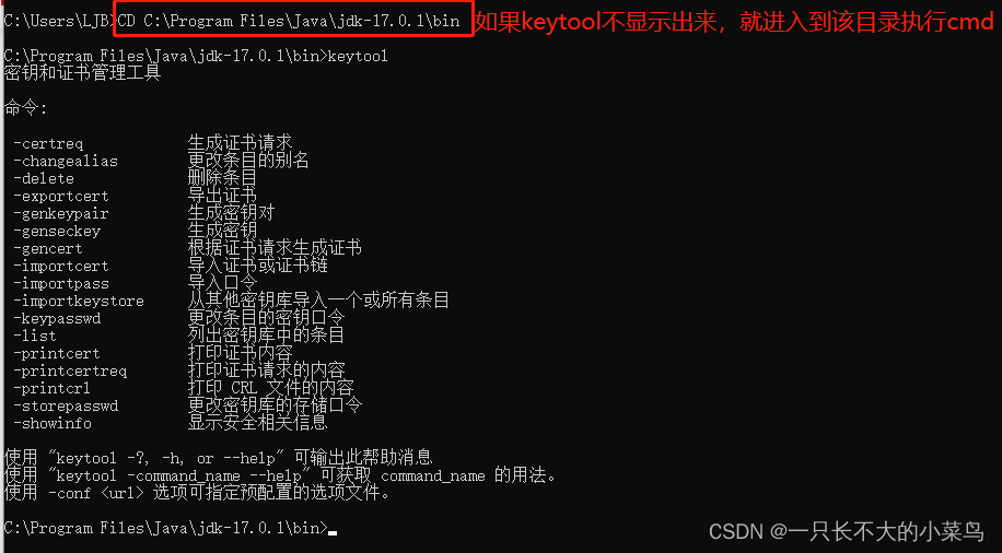 安装JDK附带有keytool.exe,如果没有的请自行下载安装,每个人版本不一样路径多少有点区别