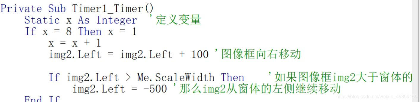 此段代码展示了一个小鸟在不断的飞翔,这里利用了 timer控件来控制飞行的速度,只要稍稍改动代码的一部分就可以使小鸟的飞翔 改变方向。