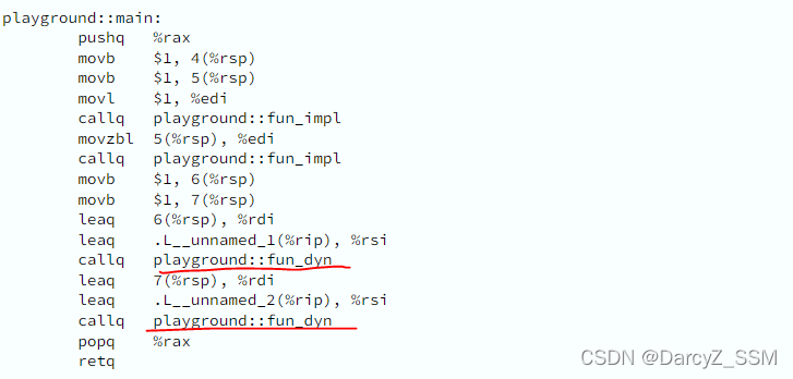 顺便提一句:callq 这两句,分别是24,32,还记得吗我在Rust基础-关于trait之四-不得不说一下rust fat point探索rust的fat point 原理https://blog.csdn.net/DarcyZ_SSM/article/details/124351982