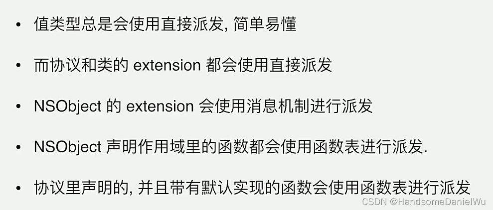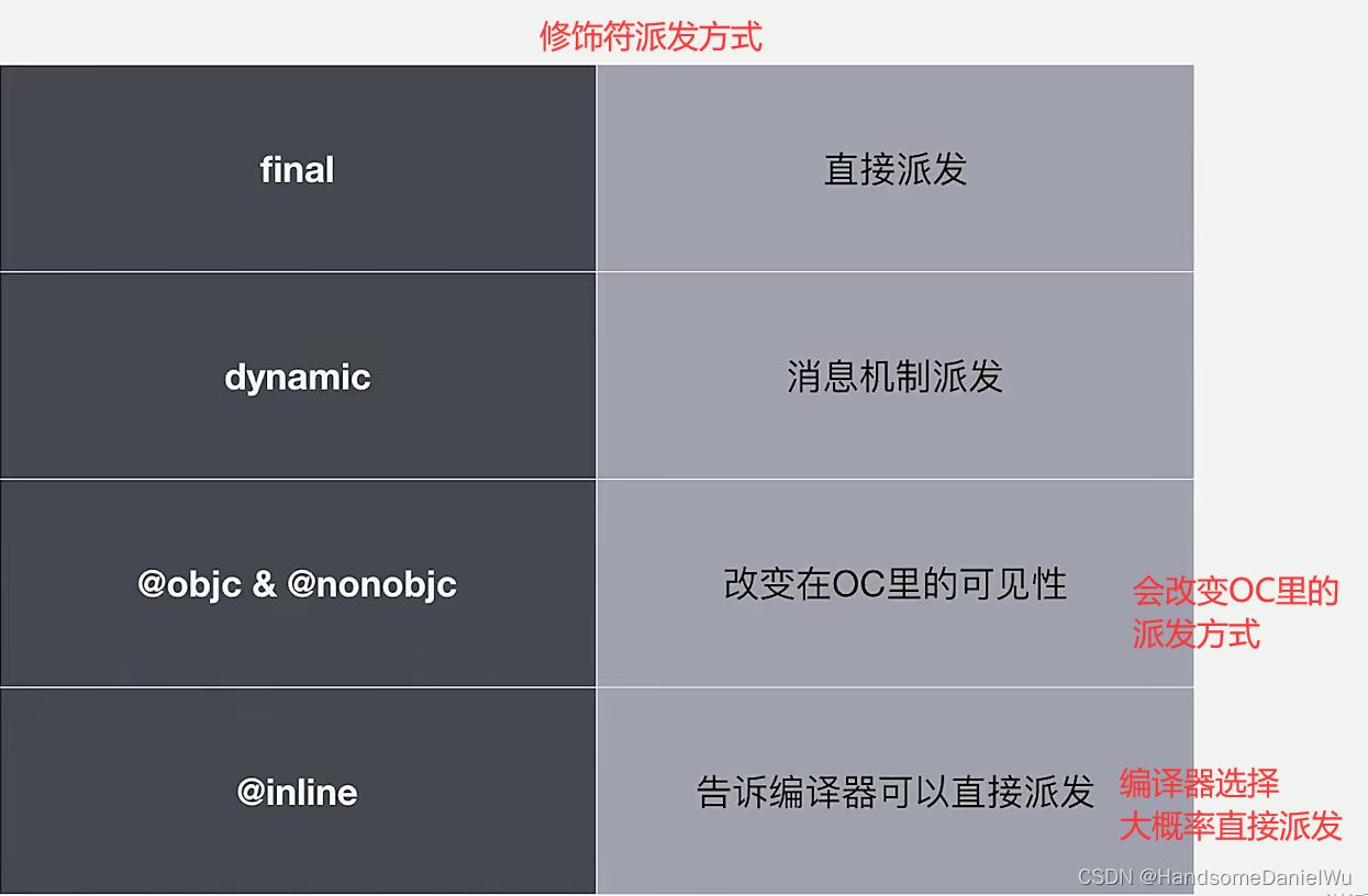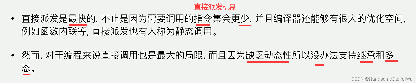 直接派发,方法直接写在调用地址,速度快,不能继承和多态