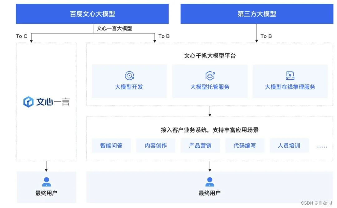 另外,文心一言只是百度的一款LLM产品,基于文心千帆平台,无论是文心大模型还是第三方模型,都可以通过该平台进行开发、精调和落地。