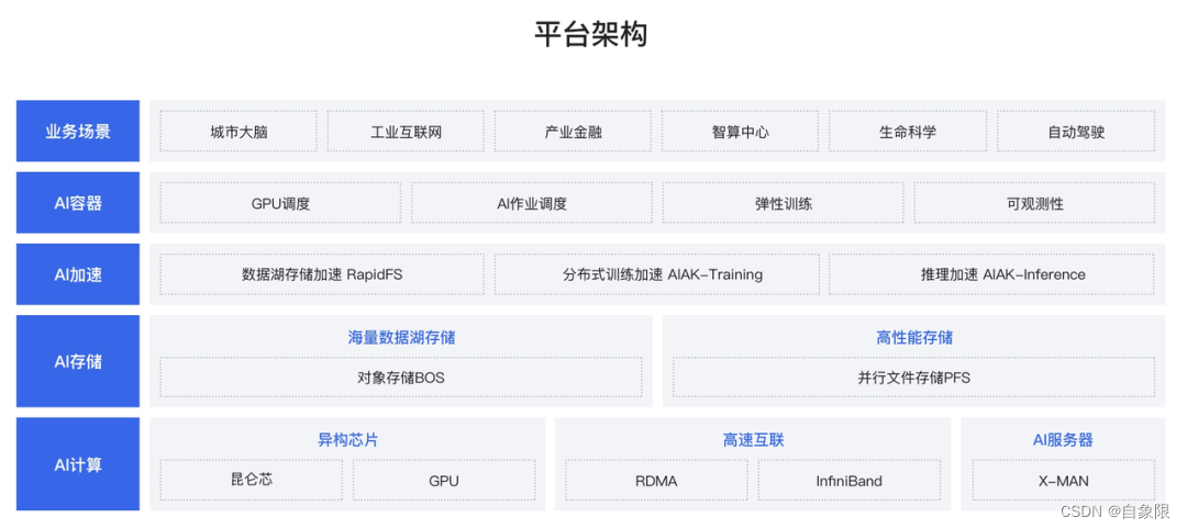 比如百度旗下的百度百舸AI异构计算平台,包含AI计算、存储、加速、容器四大核心套件,通过百度多年在AI领域的深耕和实战经验,为AI场景提供软硬一体的解决方案。