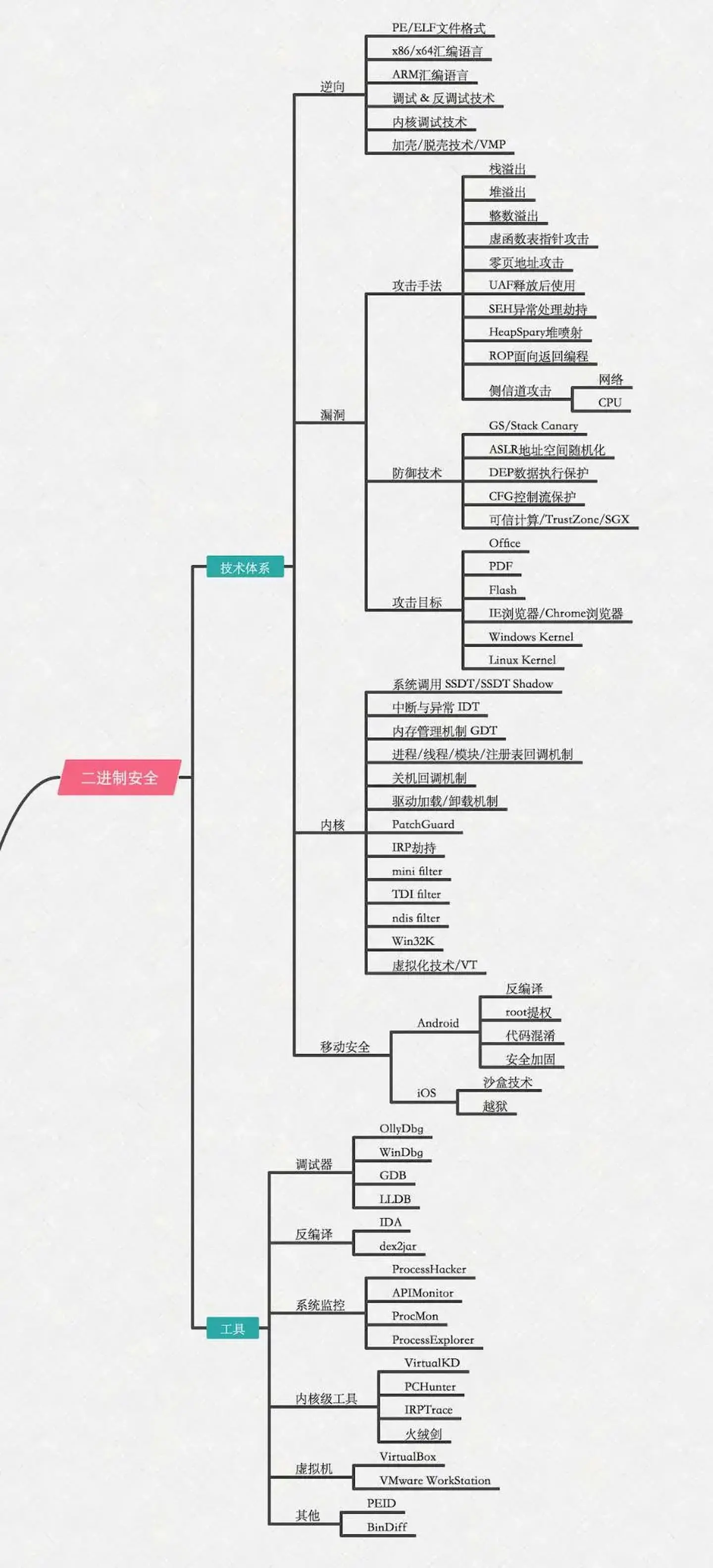 这个方向主要涉及到软件漏洞挖掘、逆向工程、病毒木马分析等工作,涉及操作系统内核分析、调试与反调试、反病毒等技术。