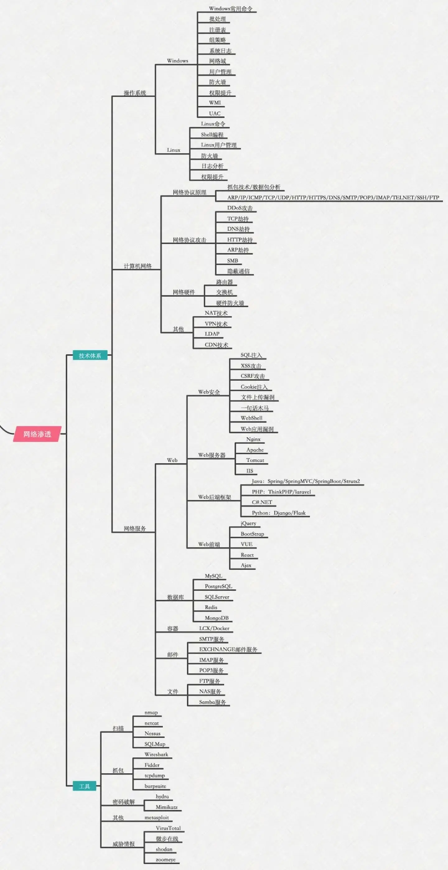 网络渗透的方向更偏向于“实战”,因此对技术在广度上有更高的要求,从网络硬件设备、网络通信协议、网络服务(web、邮件、文件、数据库等)、到操作系统、攻击手法等等都需要了解。更偏向于一个全能型的计算机专家,将各种技术融会贯通,以用于“实战”。