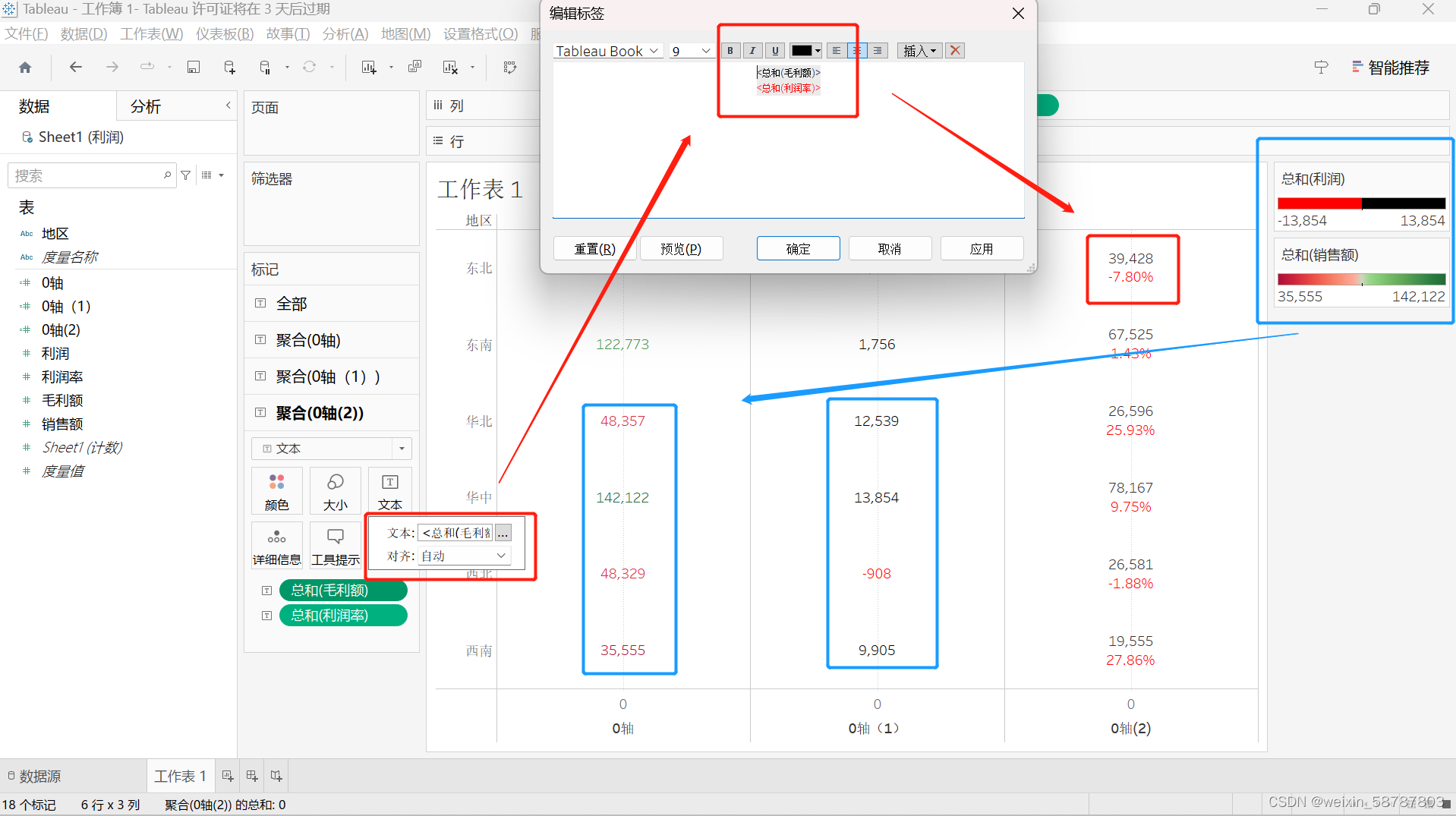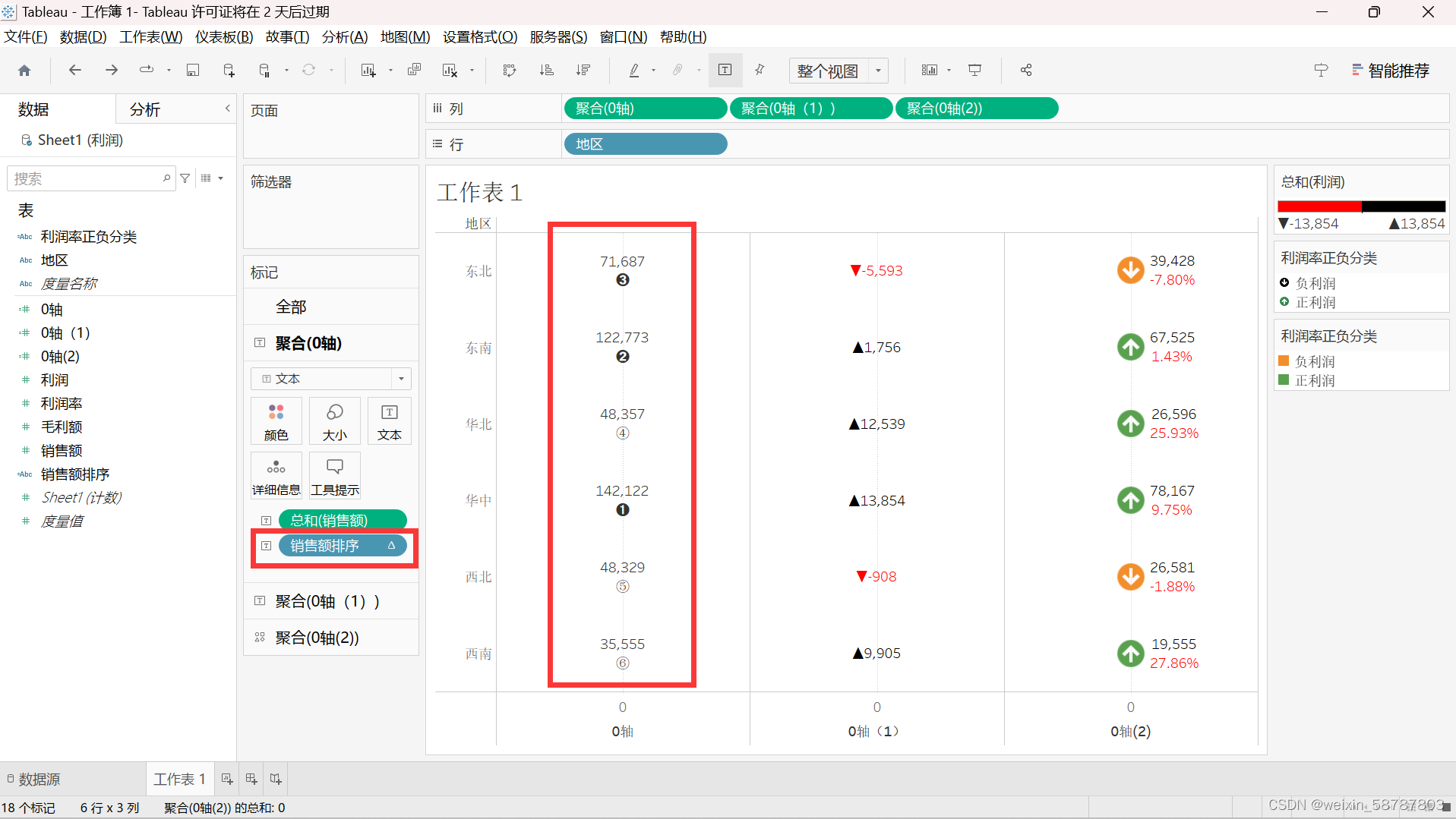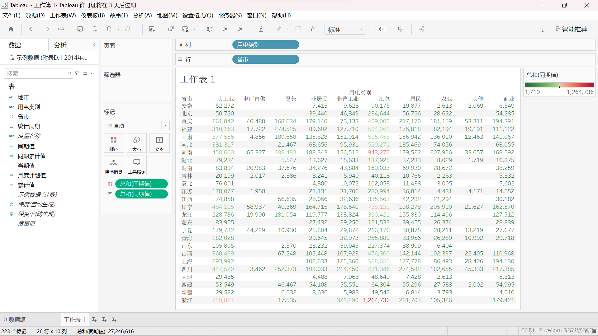 1.只用文字颜色凸显数据大小:字段拖入标记卡【颜色】即可
