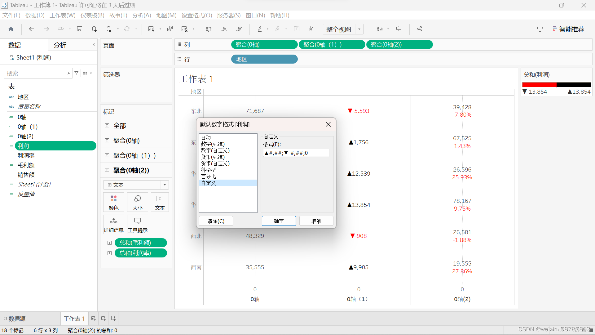 step3 添加三角形符号,自定义数据格式:▲#,##;▼-#,##;0(与excel自定义格式类似)