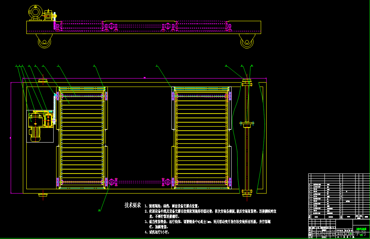 论文以研究工作的进展顺序为序,分章、节逐一论述了课题的来源,目的及意义,设计过程,在设计中遇到的问题与难点及其解决方法与措施。在设计过程部分,详细论述了设备总体结构设计、横移传动系统设计、运输传动系统设计、存取车结构设计、控制系统设计和安全防护设计 。