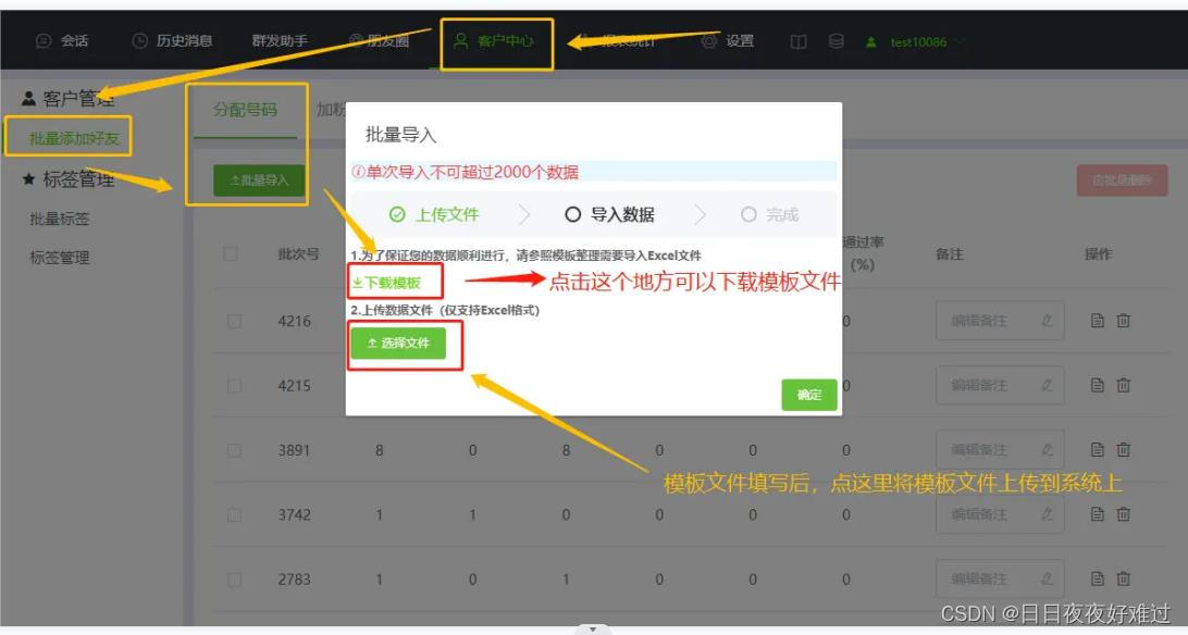 将客户的联系方式比如手机号放入Excel表格里创建加粉任务就可以了。Excel表格模版可以下载,还可对客户备注,非常方便。