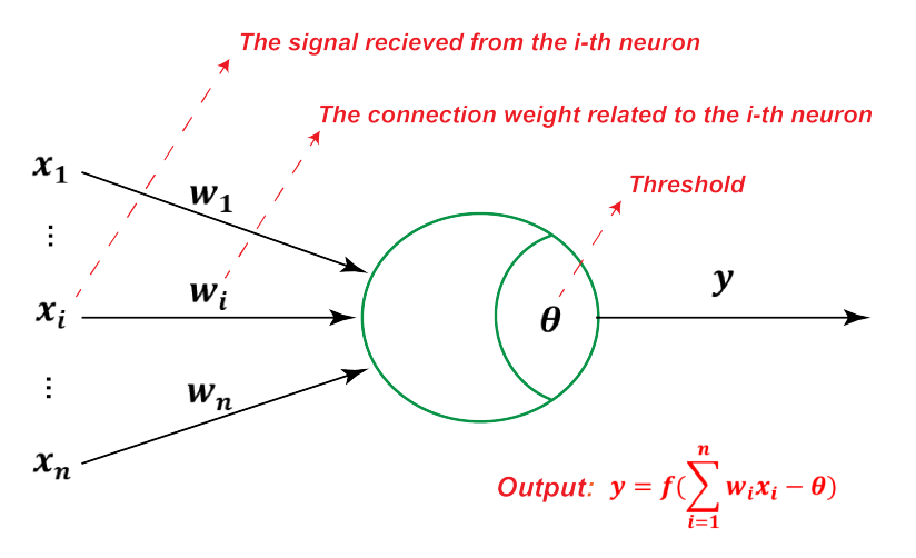 最著名也最常用的神经元表示是 MP 模型 [12],如下图 1 所示: