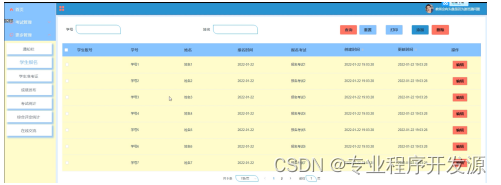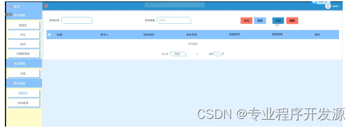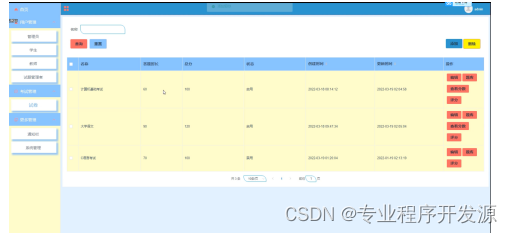 考试管理:对考试信息进行维护,添加、删除、修改信息。