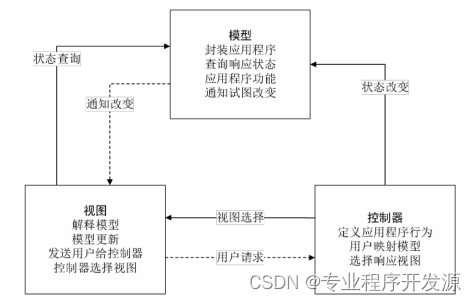 控制器(Controller)可以理解为接收用户的请求,然后视图和模型匹配在一起,一起再完成用户请求。它有非常明显的作用在划分控制层上,可以很清晰地告诉你,它就是一个分发器,选择什么样的模型、视图,可以完成用户的什么样的请求。控制层不做所有的数据处理,比如说:用户点击一个连接,控制层接受到请求之后,并不处理业务信息,它只是向模型传递用户的信息,同时告诉模型做什么,然后选择符合需求的视图返回给用户。