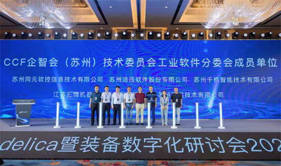 在CCF企智会(苏州)技术委员会工业软件分委会揭牌仪式上,CCF企智会(苏州)副主席朱巧明、苏州同元软控信息技术有限公司副总经理刘奇、苏州千机智能技术有限公司董事长兼总经理赵建军、苏州浩辰软件股份有限公司副总经理潘立、苏州汇川技术有限公司数字化事业部产品中心总监侯轩、江苏汇博机器人技术股份有限公司政企事务部总监相海华、南京航空航天大学长空学院副院长彭聪、苏州大学特色化软件示范学院常务副院长赵雷等嘉宾共同为CCF企智会(苏州)技术委员会工业软件分委会揭牌,这将建立CCF与工业软件的连接。