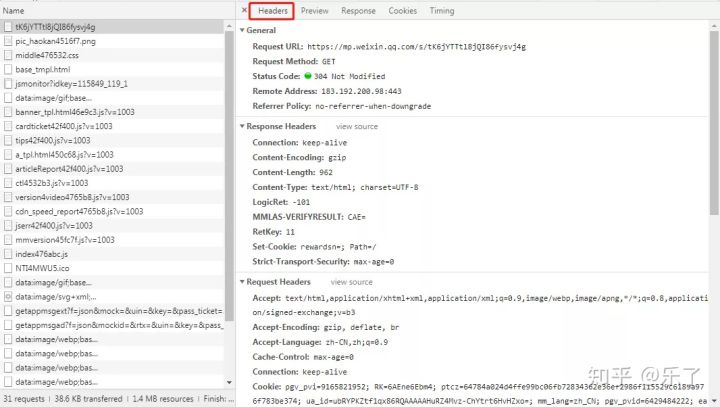 那么,原始代码是怎么来的呢?点 Headers 标签,看下图,天呐,又是一堆英文,不急不急,都是些常见单词,而且这些代码其实是分三大块,分别为"General"、"Response Headers"、"Request Headers",(当然有时候还会有更多块)