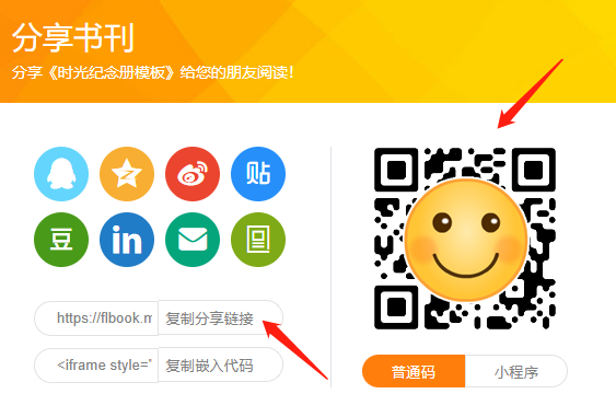 4.填写内容信息,即可生成封面,点击分享,就会弹出链接/二维码,分享便捷;生活的美好与快乐值得分享给大家一起看噢~~最重要的是查看时也无需下载安装软件,直接扫码或者点开链接就可以啦!非常方便。