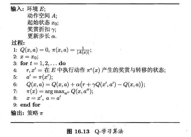 状态-动作值函数(Q):Q(x,a),即从状态x出发,执行动作a后再使用π策略所带来的累积奖赏。