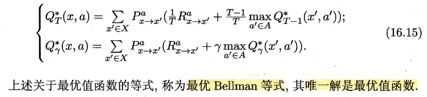 一个强化学习任务可能有多个最优策略,最优策略所对应的值函数 V* 称为最优值函数,即