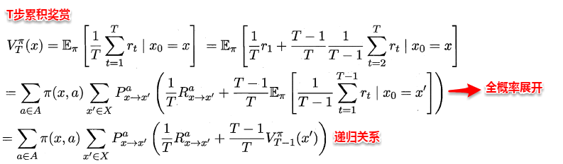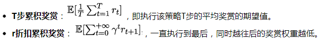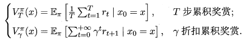 根据累积奖赏的定义,我们可以引入T步累积奖赏与r折扣累积奖赏: