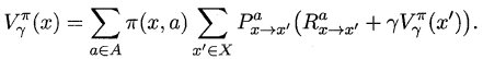 状态值函数(V):V(x),即从状态x出发,使用π策略所带来的累积奖赏;