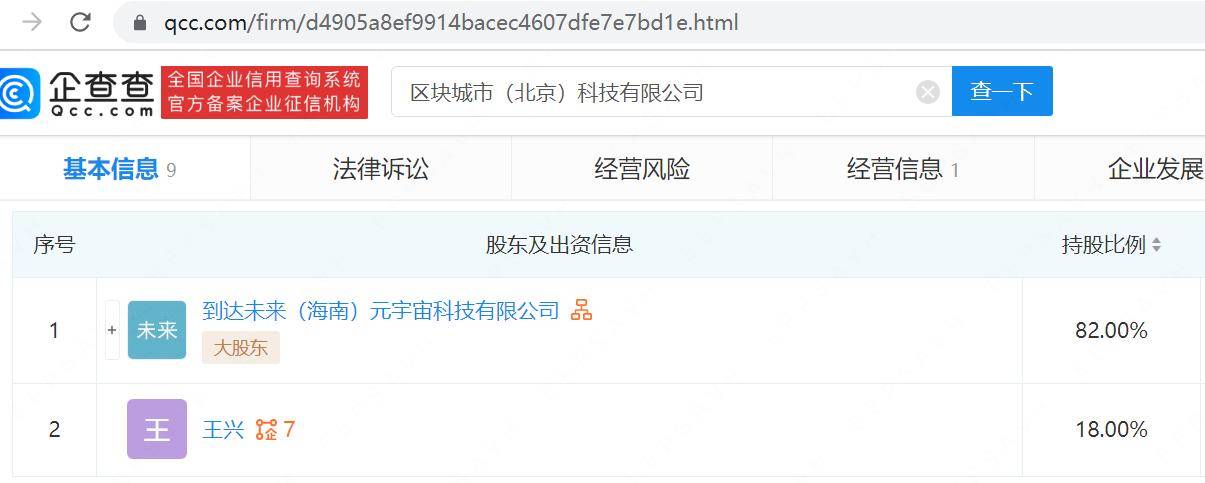 而在短短十多天后,也就是2023年1月6日,到达未来占股82%,王兴占股18%,共同成立了区块城市(北京)科技有限公司,注册资本2亿元,地址 在 中关村 , 离美团的北京三快科技有限公司仅一步之遥 。