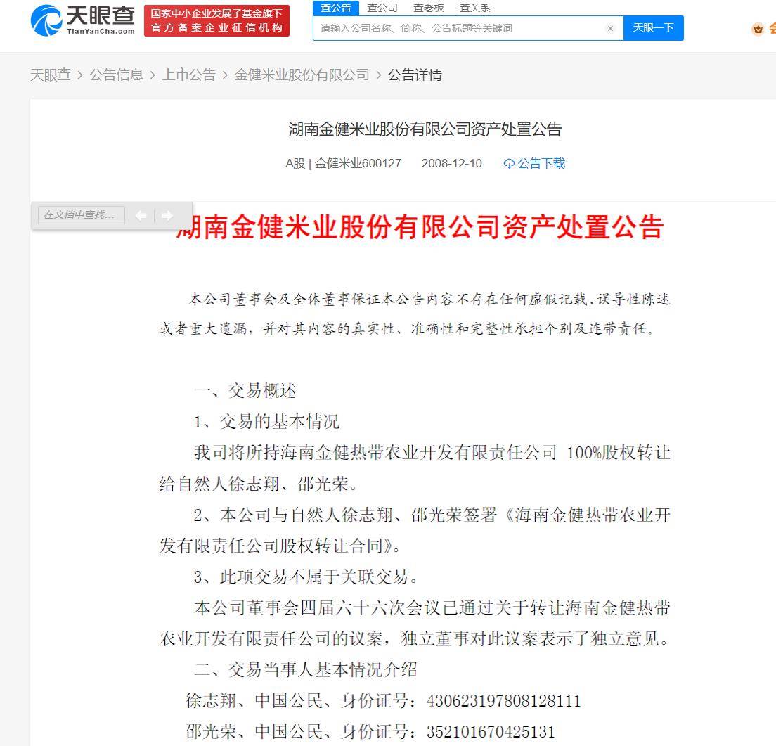 我反复尝试搜索,却始终没找到上面交易的这宗农场土地何时被徐志翔脱手变现、具体卖了多少钱,以及卖给了谁,而且该标的公司主体早已注销,那网传徐志翔投资炒地、一夜暴富的消息就无从查实了吗?