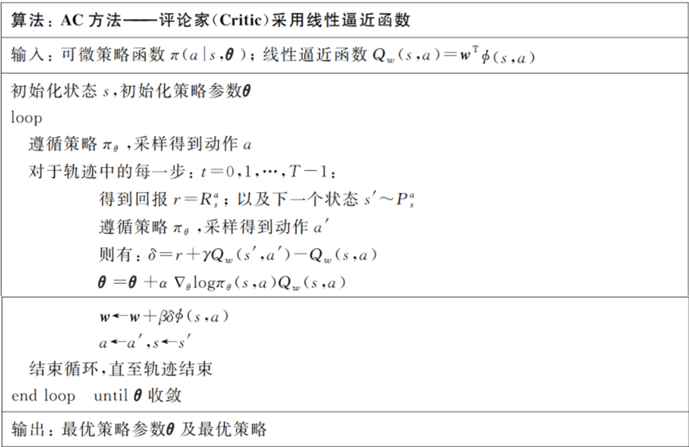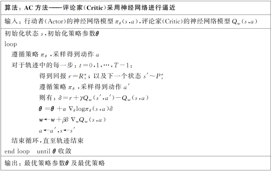 (3)行动者-评论家方法同时对值函数和策略函数进行迭代计算,以求得最优策略。