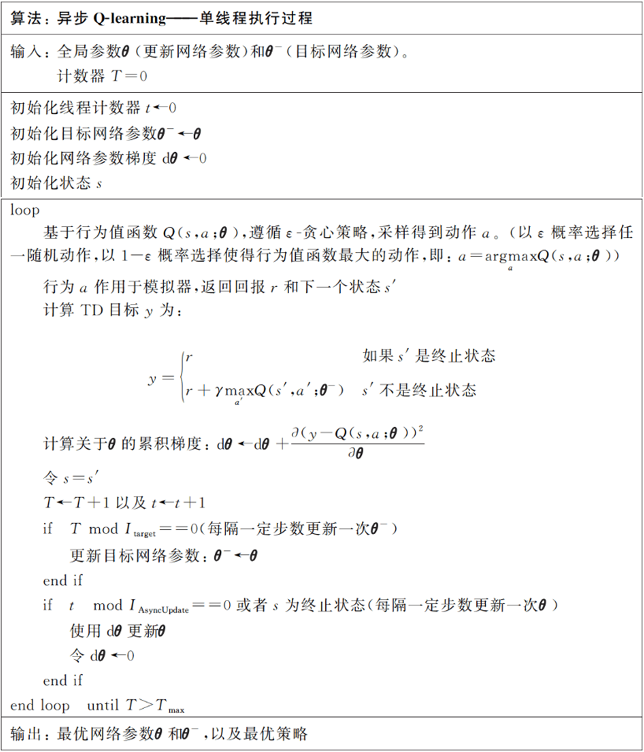 目标。同 DQN 一样,异步 Q-learning 也有两个神经网络:目标网络和更新网络,分别使用了不同的网络参数