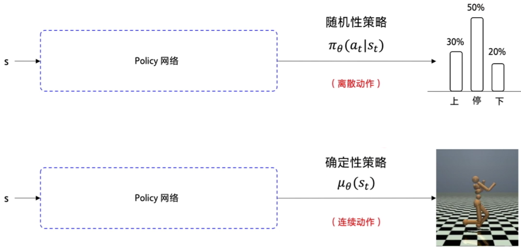 处,所采取的动作也会不一样。遵循此策略函数采样得到的动作