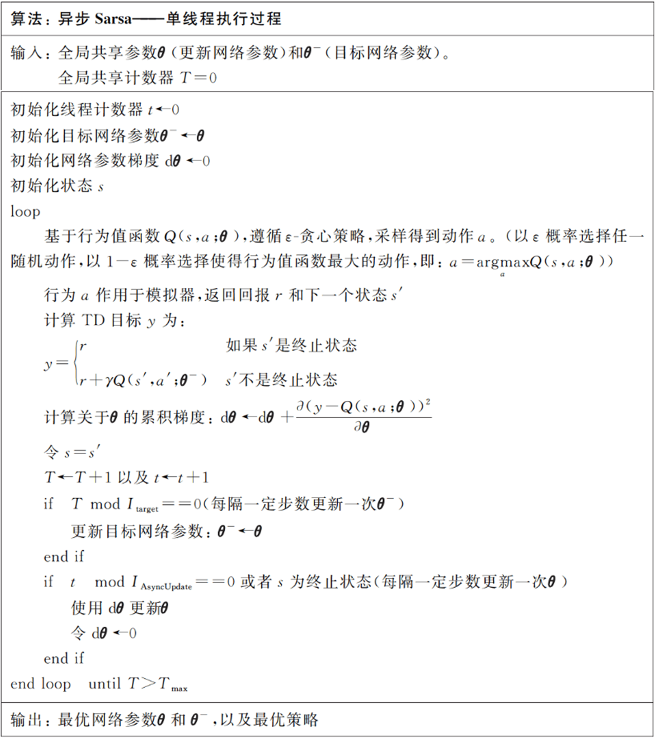 上采取的行动。同样地,异步 Sarsa 也使用了两个神经网络,并通过多个时间步长累计更新来学习网络参数。