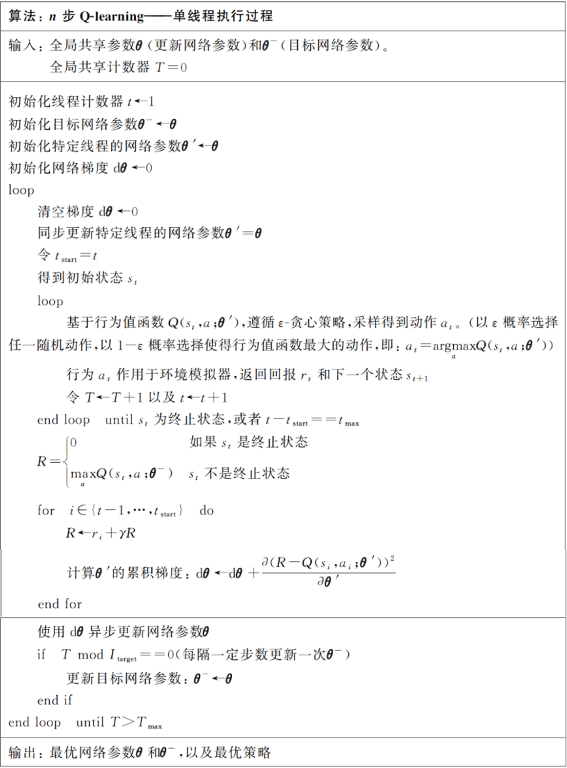 n 步 Q-learning 算法同样使用了两个神经网络,一个作为更新的目标,参数为