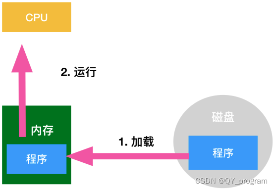 磁盘中存储的程序必须加载到内存中才能运行,在磁盘中保存的程序是无法直接运行的,这是因为负责解析和运行程序内容的CPU事需要通过程序计数器来指定内存地址从而读出程序指令的。