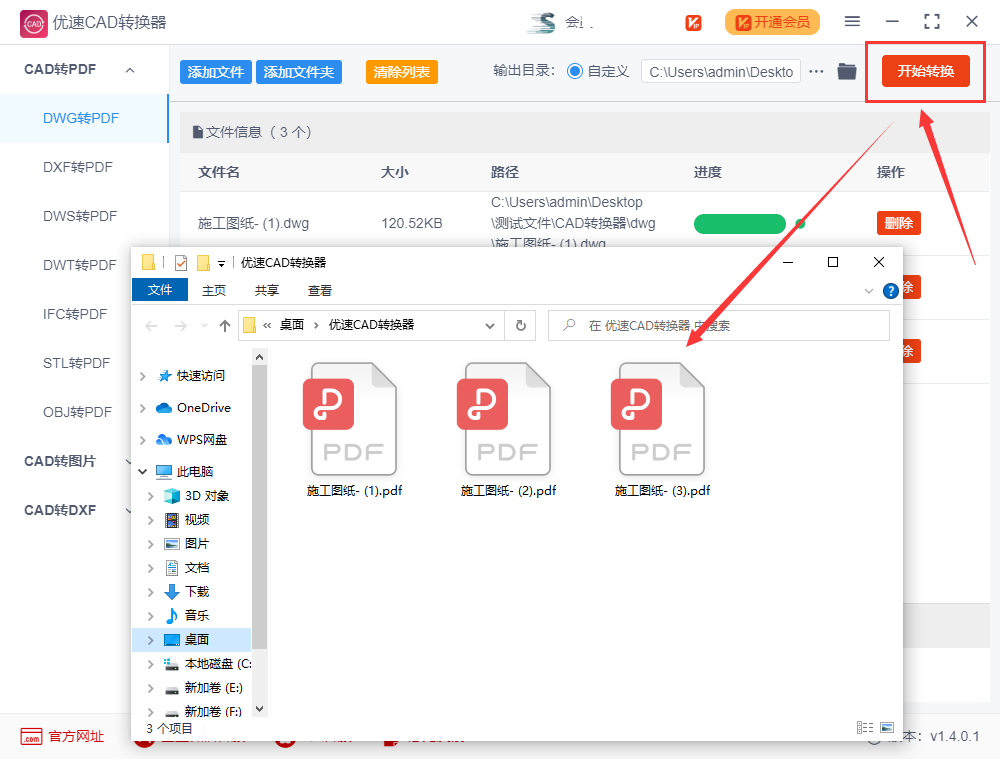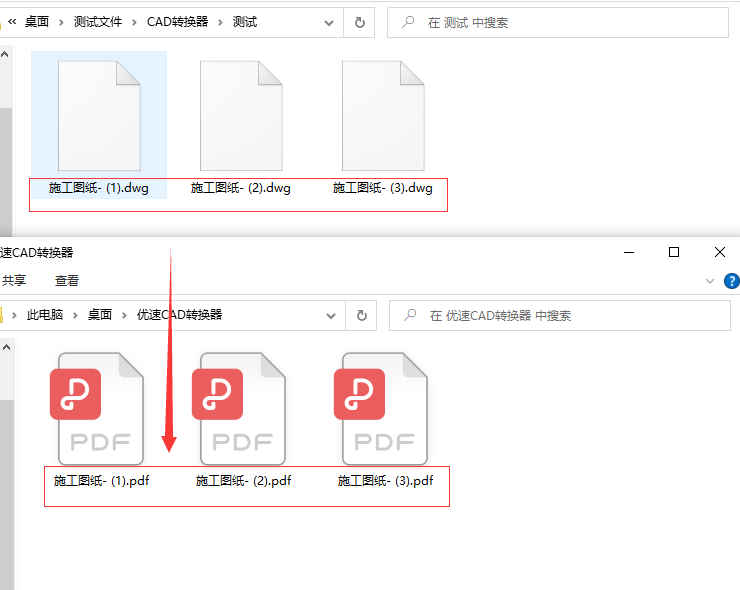 步骤4,从上面案例的结果我们可以看到,软件成功的将dwg格式的CAD文件全部转成了pdf格式。