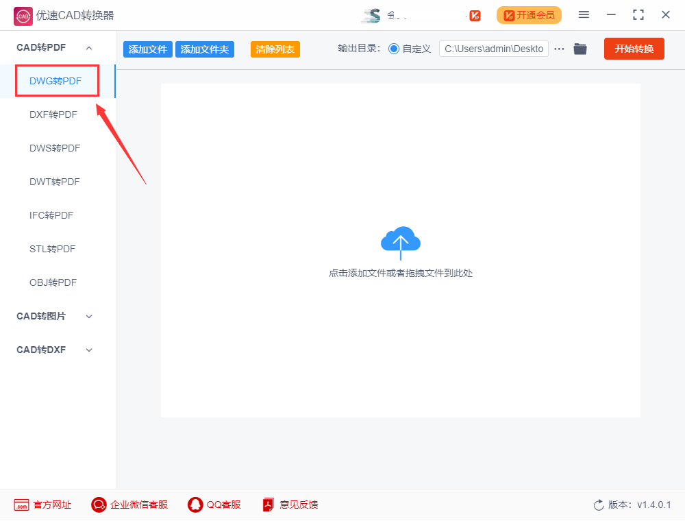 步骤1,如下图所示,据需要转换的cad文件格式,在左边列表中选择对应的功能吗,案例中我们选择“DWG转PDF”功能。