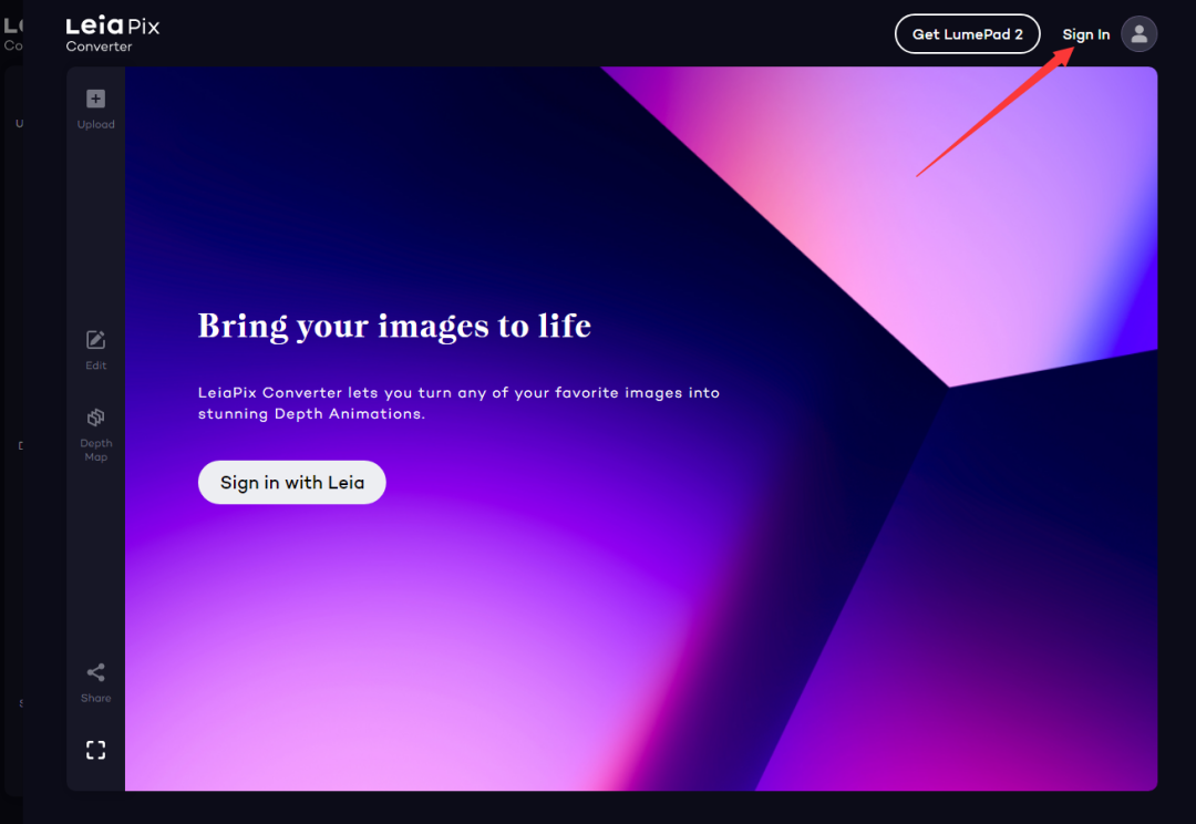 首先打开LeiaPix Converter官网,网址是:https://convert.leiapix.com/