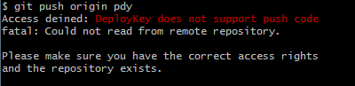 参考链接:码云 push时提示 DeployKey does not support push code fatal: Could not read from remote repository.