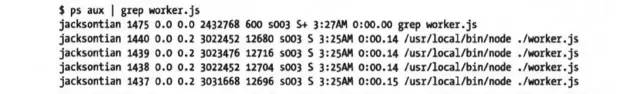 } 在 linux 中,我们通过 ps aux | grep worker.js 查看进程