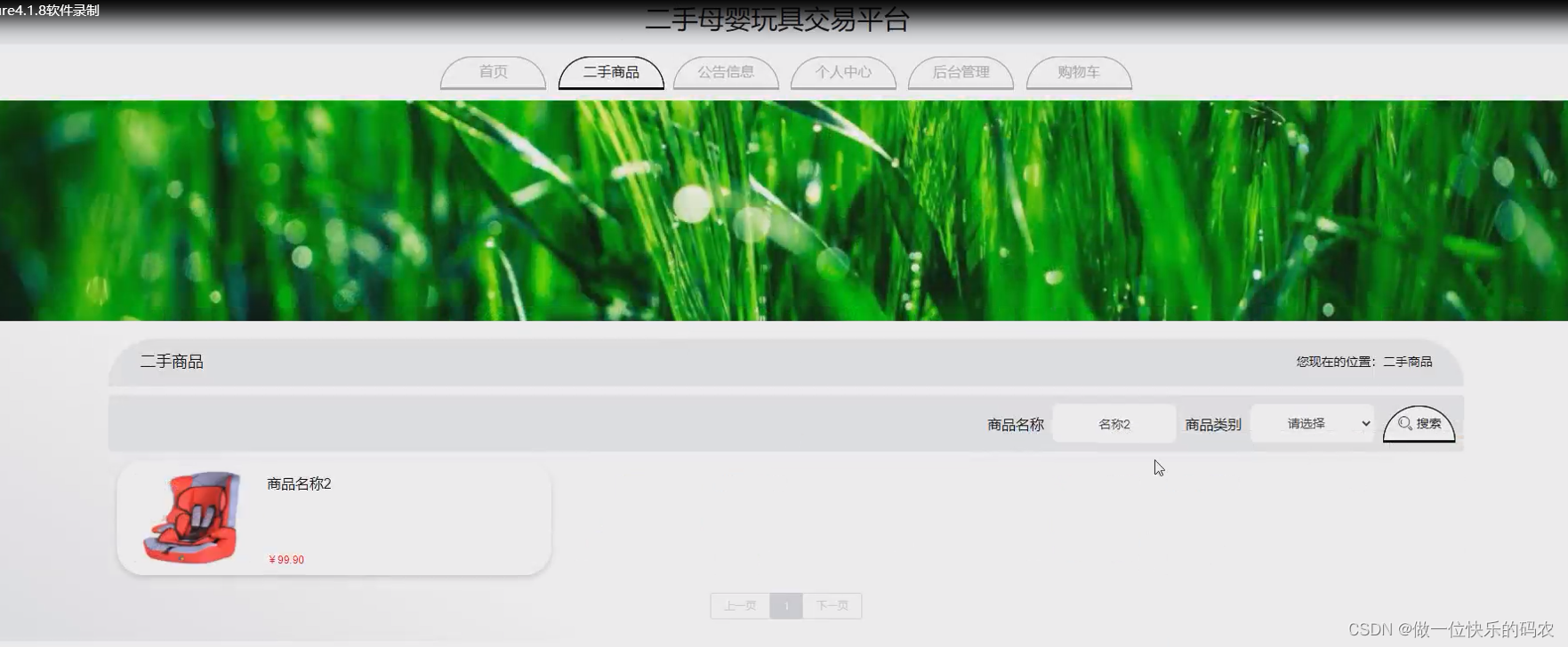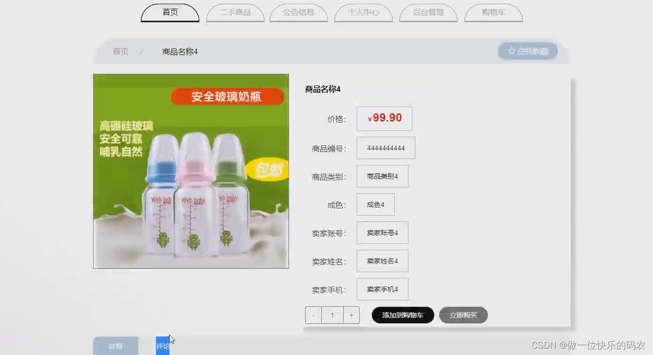 该部分内容提供查看二手商品、公告信息等,用户能够进行注册、登录、修改个人信息和购买功能。
