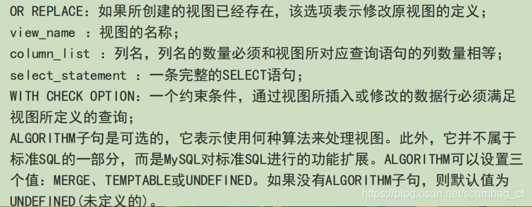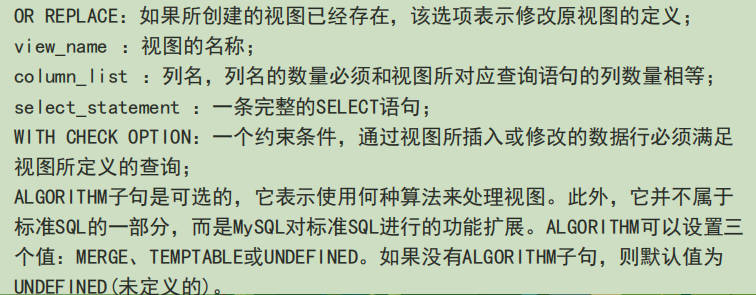 CREATER [OR REPLACE] [ALGORITHM = {UNDEFINED|MERGE|TEMPTABLE}]