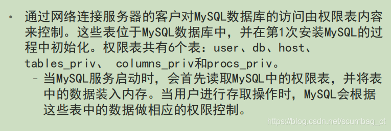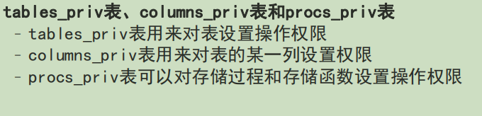 [WITH GRANT OPTION];//授予权限REVOKE ALL PRIVILEGES, GRANT OPTION FROM username@ip;//收回权限DROP USER username@ip;//删除用户
