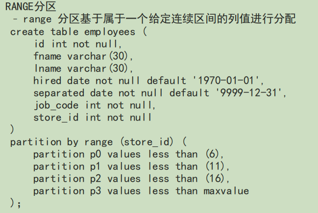对于通过RANGE分区的表,只可以使用ADD PARTITION添加新的分区到分区列表的高端。设法通过这种方式在现有分区的前面或之间增加一个新的分区,将会导致错误。