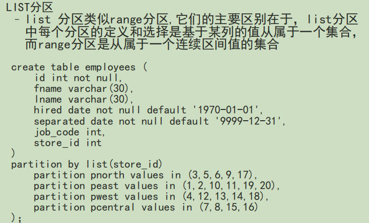 1.用来确定新分区模式的PARTITION子句使用与用在CREATE TABLE中确定分区模式的PARTITION子句相同的规则