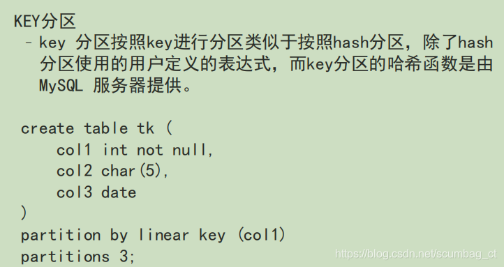 当表中数据量不断增大,查询数据的速度就会变慢,应用程序的性能就会下降,这时就应该考虑对表进行分区。